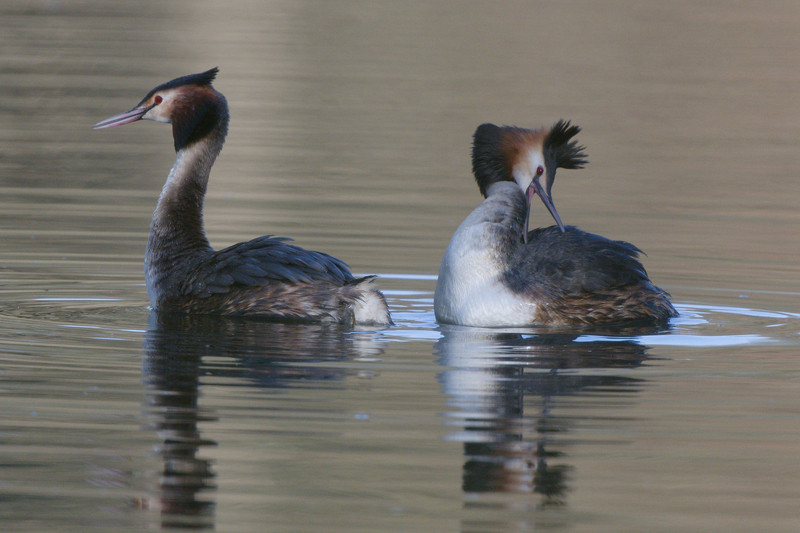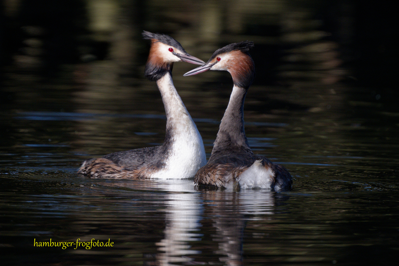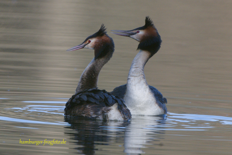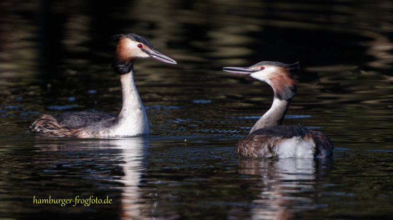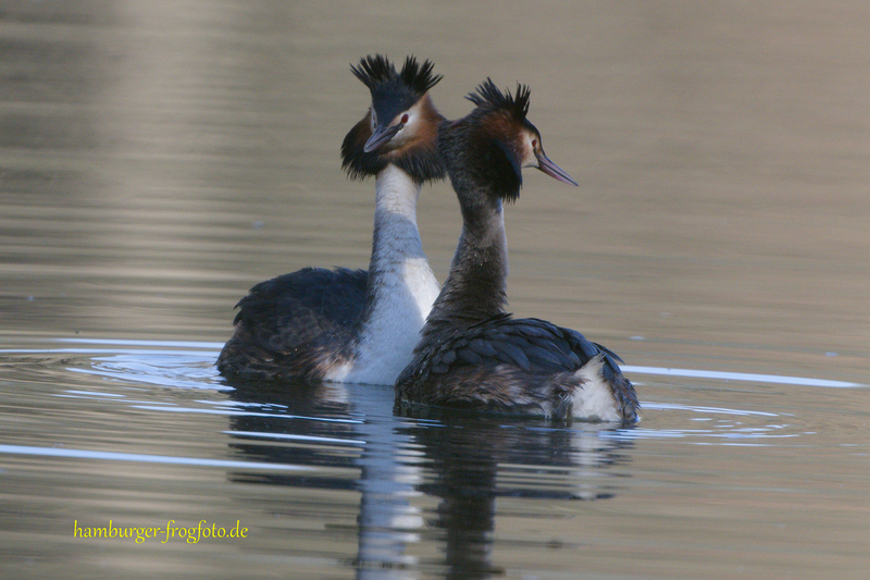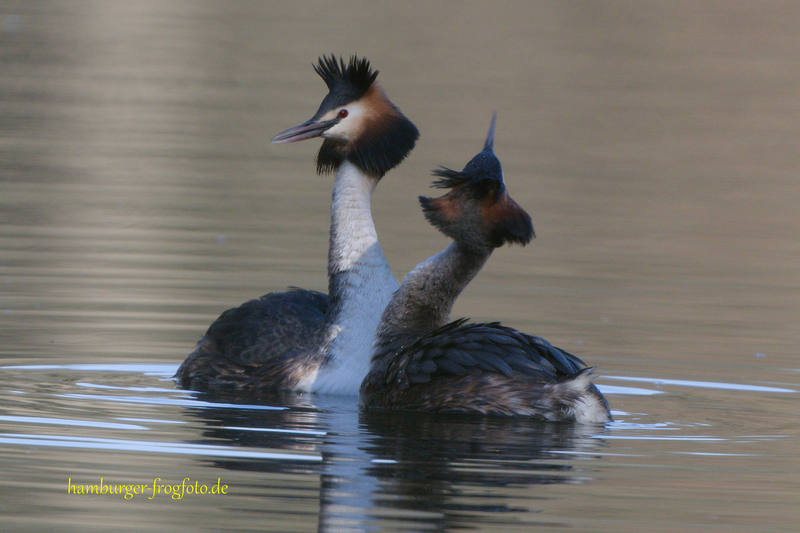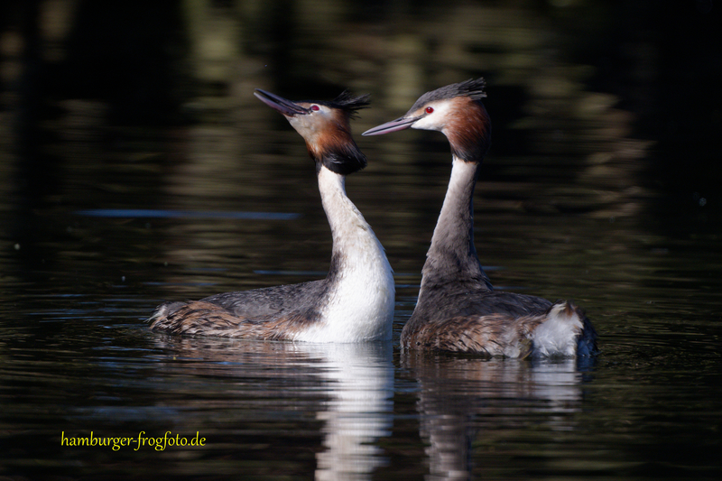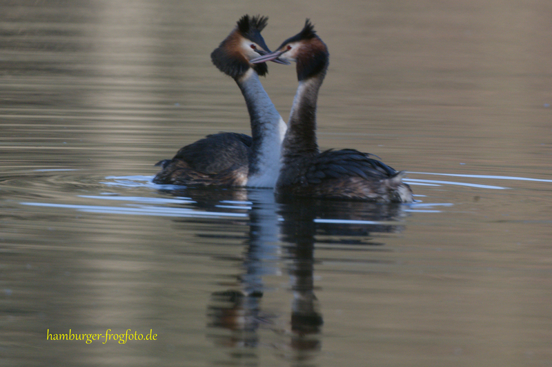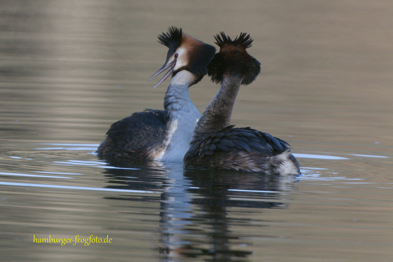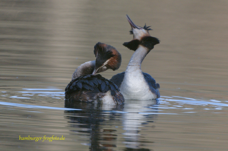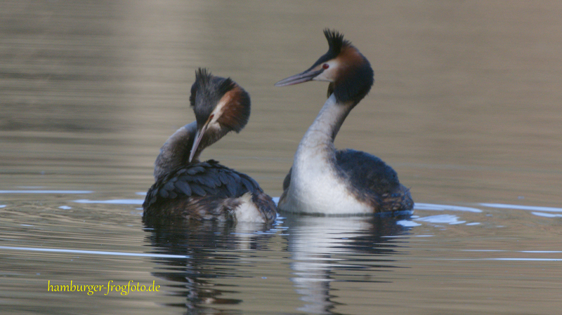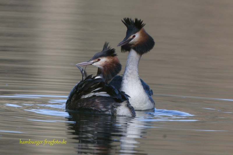 4 März 26: Wieder blauer Himmel in HH,aber Morgends nur 3 Grad Plus,später 12.War wieder am See und nun balzen auch die Haubentacher !!!