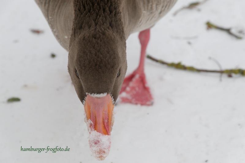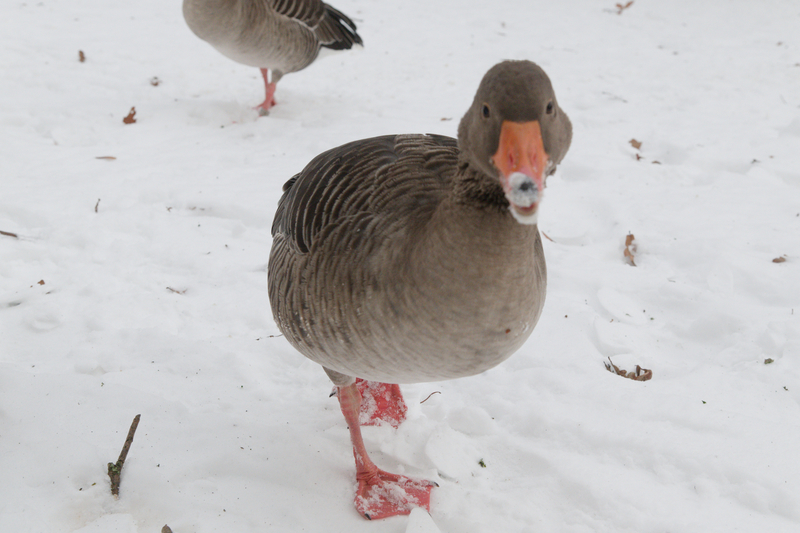 10 Jannuar 26: Viel Schnee in Hamburg...die Gänse hungern....